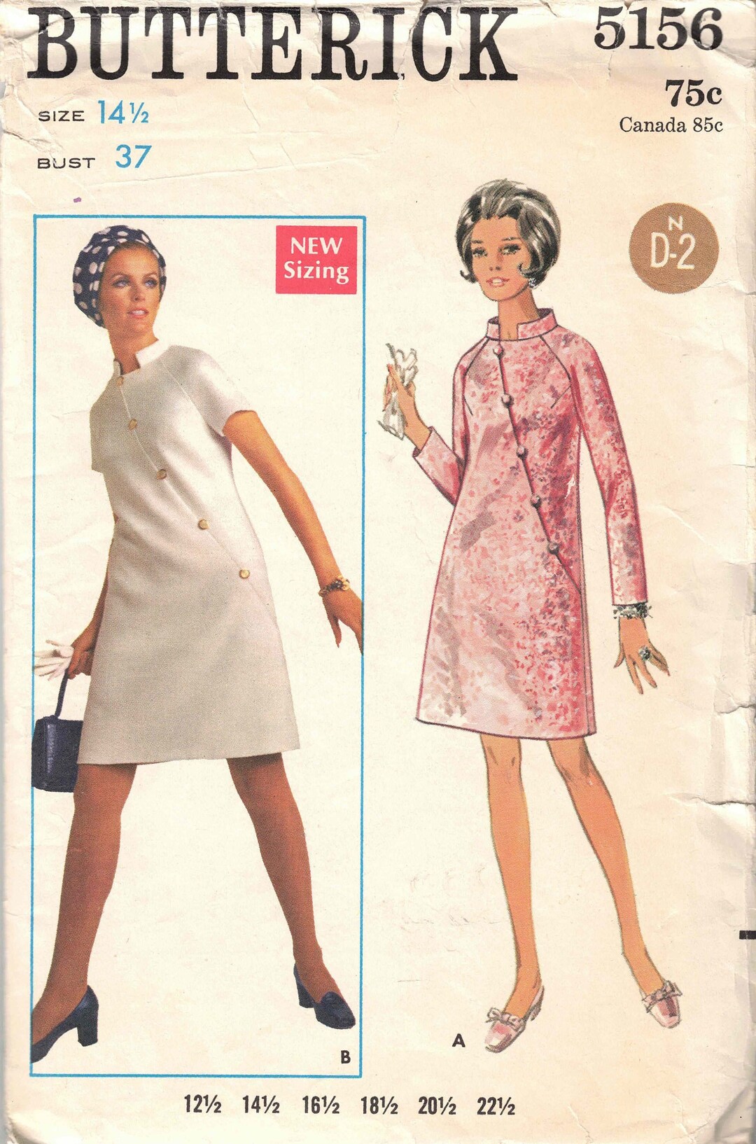 Bust 37 Mod Dress Sewing Pattern Unusual Diagonal Front With Etsy