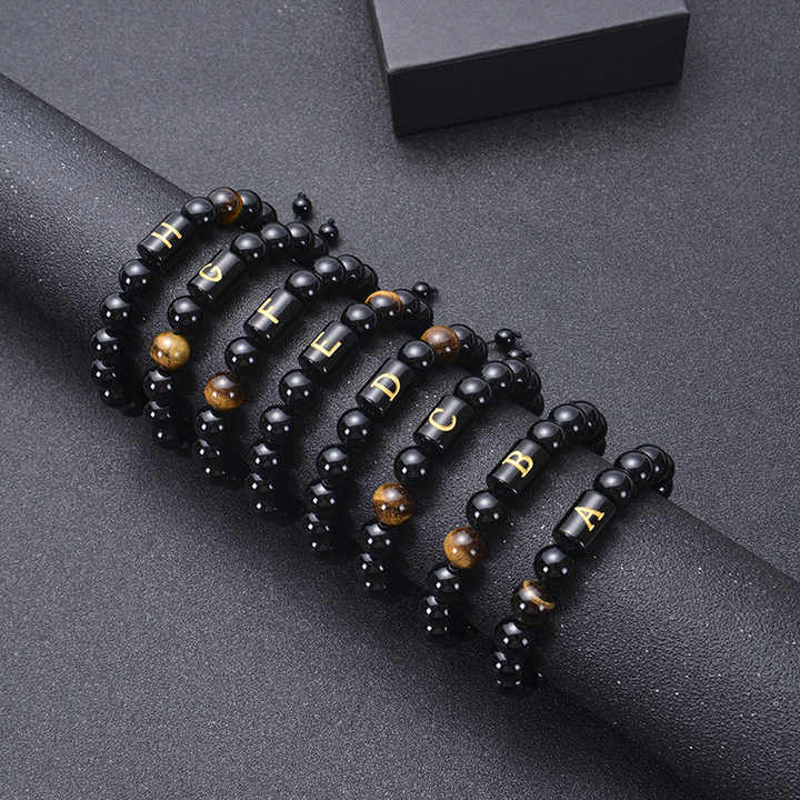 Wholesale New A Z 26 Letter Natural Black Agate Men S Bracelets Handmade Adjustable Alphabet Braided Rope Tiger Eye Stone Beads Bracelet From M Alibaba Com